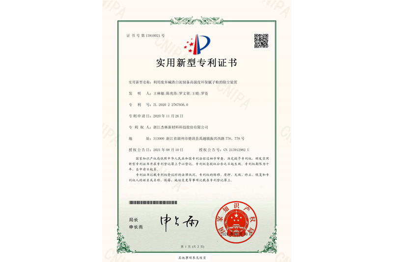 利用廢棄堿渣白泥制備高強(qiáng)度環(huán)保膩子粉的除塵裝置